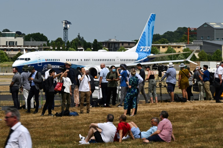 A Boeing 737 at the Farnborough Airshow where the company announced significant new plane orders – Copyright AFP/File JUSTIN TALLIS