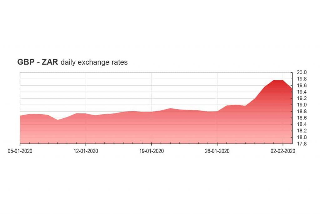 Last week saw the Rand hover around R18.95 to R19.06 against the Pound Sterling. This came amid continued weakness in emerging markets following the impact of the coronavirus. Losses in emerging markets were led by Asian economies, especially Hong Kong and Singapore, which are closely tied to mainland China’s economy. Emerging market currencies also fell for both Tuesday and Wednesday last week as a reflection of the overall market weakness.